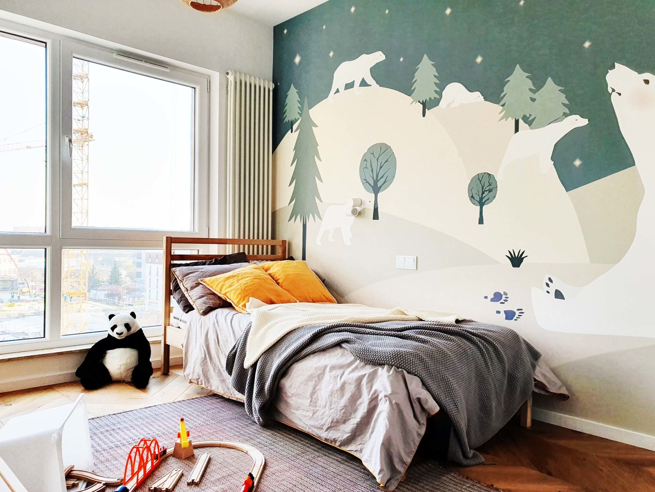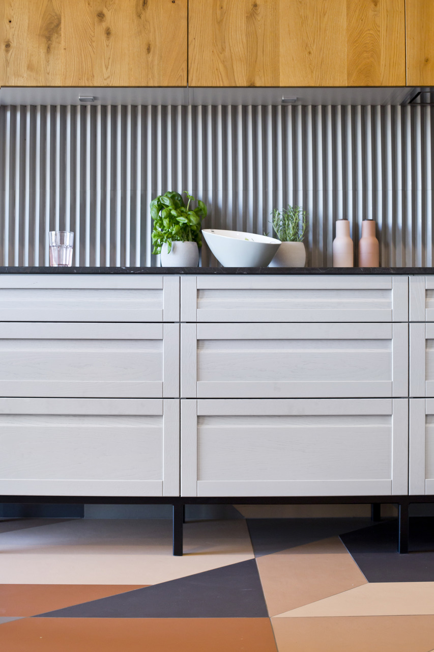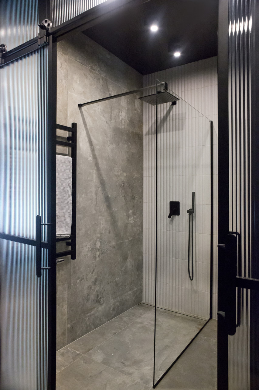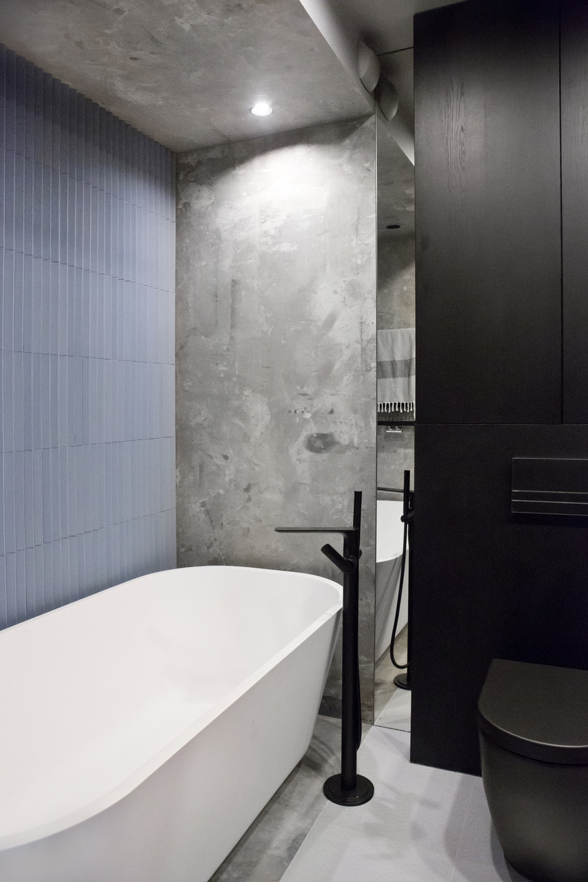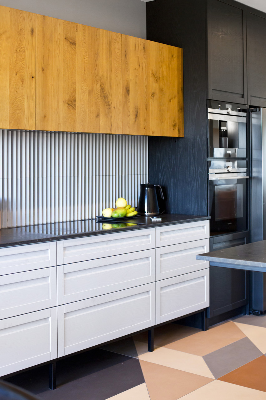 Projekt mieszkania na krakowskim Zabłociu. W aranżację tego apartamentu włożyłam całe serce. Mieszkanie zostało zaprojektowane z najwyższą starannością i dbałością o szczegóły. Salon połączony z kuchnią stanowi część centralną i serce apartamentu. Kolor Stormy Monday – odcień szarości – pokrywa większość ścian i mebli zrobionych na wymiar. Między szafkami oraz na wyspie znajdują się piękne ręcznie robione płytki, a blat to granit szczotkowany. Podłogę w kuchni zdobią płytki z kolekcji TIERRAS zaprojektowane przez Patricie Urquiole. Stół oświetla wykonana z filcu lampa Dancing zaprojektowana przez Iskosa Berlinga, wyglądem przypominająca spódnicę tańczącej baletnicy. W salonie znajduje się bardzo wygodny olbrzymi narożnik. Krzesła znajdujące się w mieszkaniu zostały zakupione na aukcjach staroci i odnowione. W jednej z łazienek można zrelaksować się w wolnostojącej wannie, natomiast w drugiej wziąć szybki prysznic. Łazienki zdobi czarna ceramika. Sypialnia w odcieniach błękitu, połączona z łazienką i garderobą stanowi idealne miejsce na odpoczynek. Łóżko w pięknym i oryginalnym kolorze skradło moje serce i musiało stać się głównym meblem w projektowanym pomieszczeniu. Mając do dyspozycji mebel w tak nietypowym odcieniu, nie było łatwo zaprojektować całą sypialnię tak, aby podkreślić jego walory i go nie przytłoczyć. Ściana za łóżkiem oraz prowadząca do łazienki i garderoby pokryta została piękną włoską tapetą. W mieszkaniu znajdują się jeszcze dwa pokoje dziecięce oraz pomieszczenie gospodarcze.